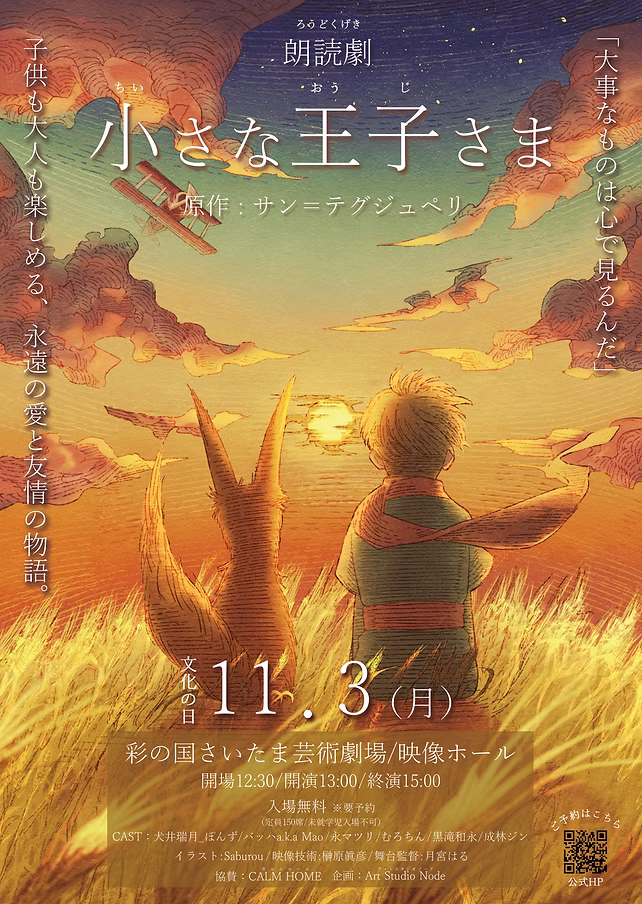 【出演情報】朗読劇「小さな王子さま」に出演させていただきました! 2025年11月19日 こんにちは、成林ジンです。この度、素敵なご縁を頂き、朗読劇「小さな王子様」にてキツネ役を担当させていただきました!ありがとうございます! ▼公式ホームページhttps://astudionode.wixsite.com/littleprince1103 作品・出演情報に戻る 成林ジンofficialブログトップページに戻る